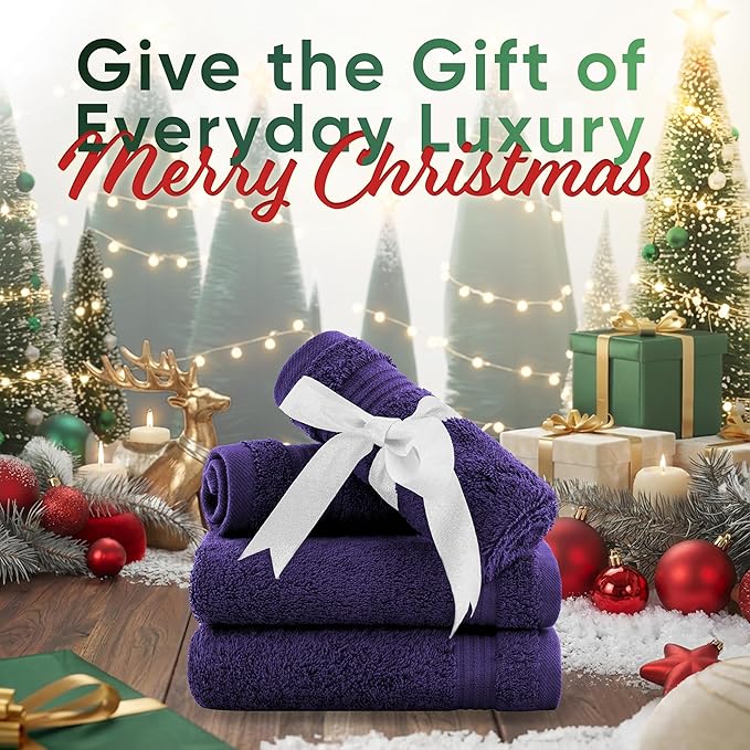American Veteran Towel, 100% Cotton Turkish Washcloths for Bathroom Essentials 4 Pack, Soft Absorbent Wash Cloths Quick Drying Small Towels Washrags, Purple