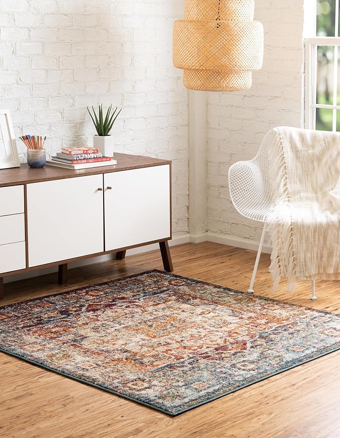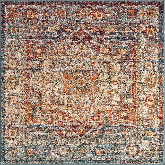 Unique Loom Isabella Collection Area Rug - Adjani (5' 1" Square, Multi/ Beige)