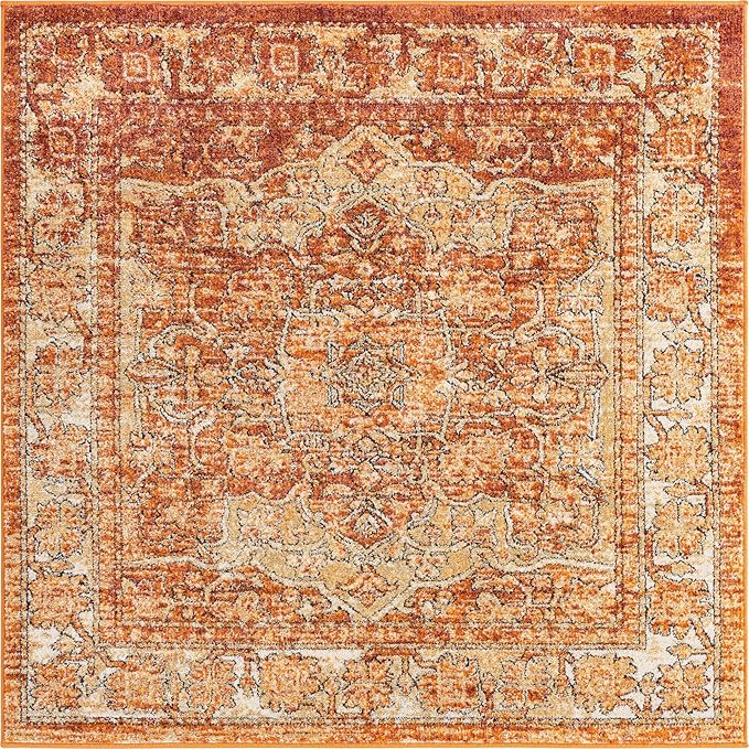 Unique Loom Isabella Collection Area Rug - Adjani (5' 1" Square, Rust Red/ Black)