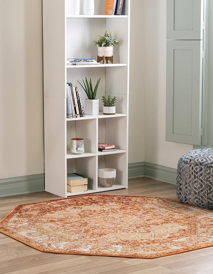 Unique Loom Isabella Collection Area Rug - Adjani (5' 1" Octagon, Rust Red/ Black)