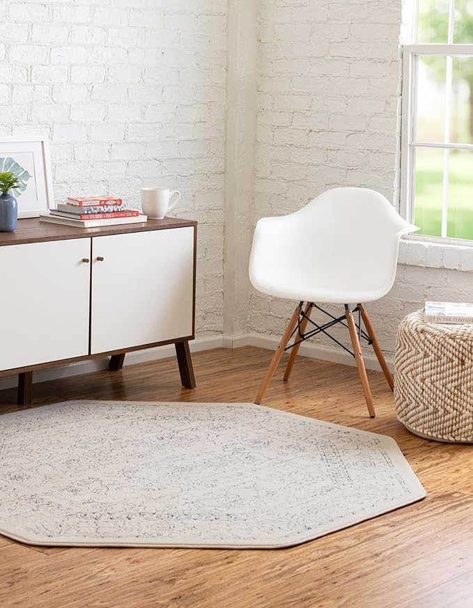 Unique Loom Isabella Collection Area Rug - Adjani (5' 1" Octagon, White/ Blue)