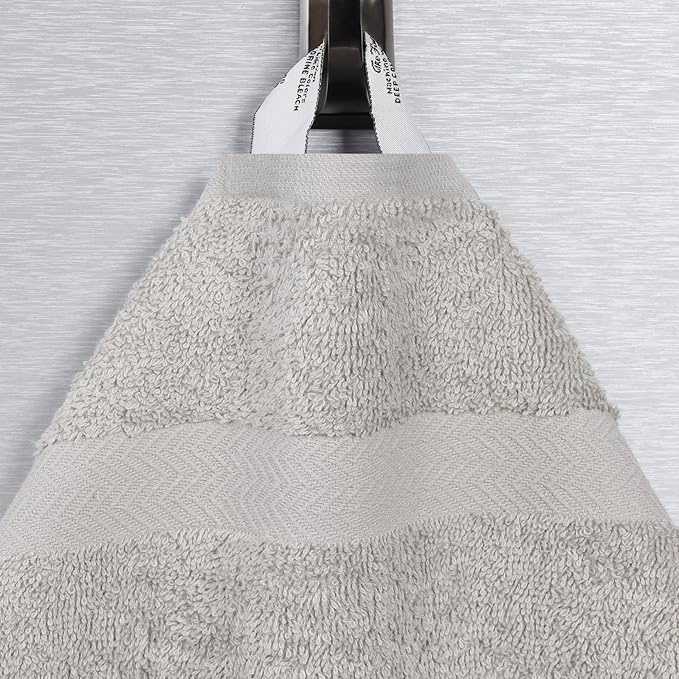 - MODERN ELEGANCE WITH CHEVRON DETAIL: Update your bathroom with these sophisticated towels boasting superb solid, eco-friendly dyed colors and a fashionable chevron trim for an elegant and contemporary touch