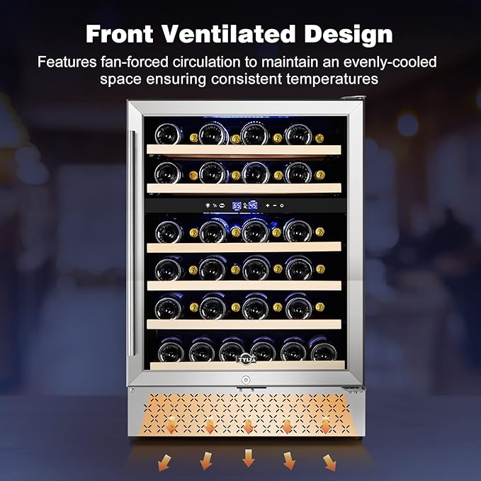 Tylza 24 Inch Wine Fridge, Dual Zone 54 Bottles Wine Refrigerator, Built-In or Freestanding, Safety Lock, Double-Layer Glass Door, Adjustable Shelves, Wine Cooler Refrigerator for Home Bar Kitchen