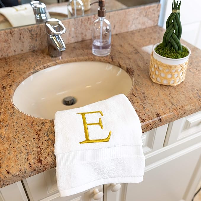 - Premium Quality - High quality durable soft rich monogram letter hand towels in white cotton with gold stitching