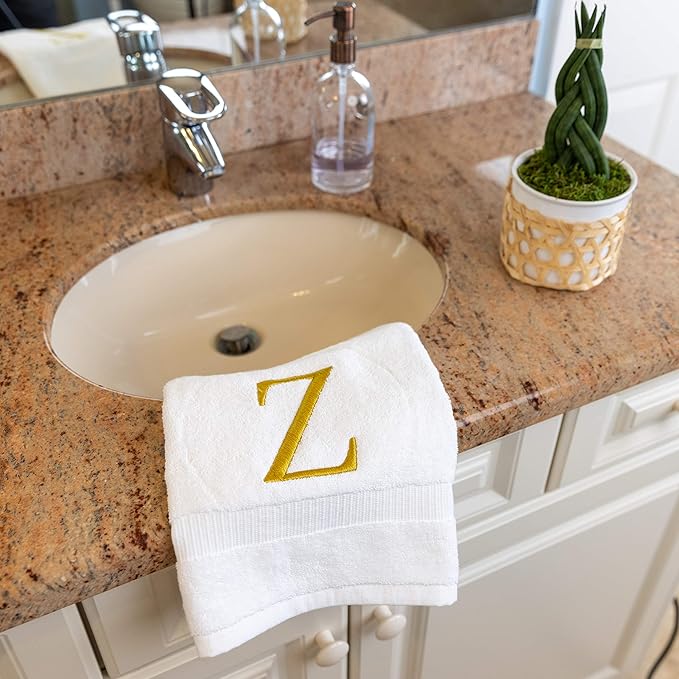 - Premium Quality - High quality durable soft rich monogram letter hand towels in white cotton with gold stitching