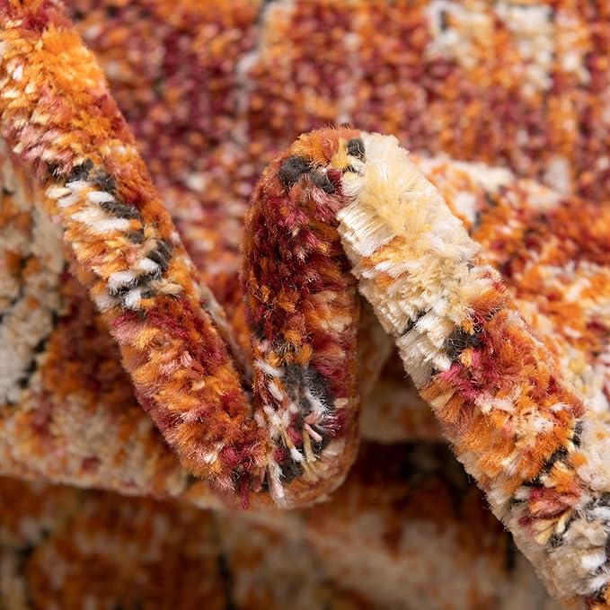 - Size in FT: 3' 3 x 5' 3 - Size in CM: x - Pile Height & Thickness: 1/2" - Colors: Rust Red, Ivory, Gray, Black, Orange