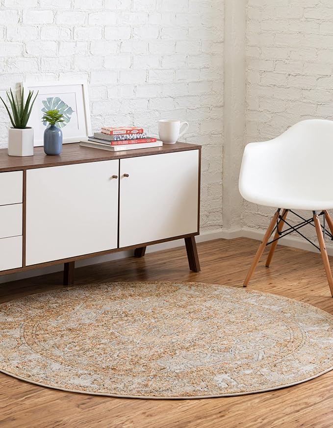 Unique Loom Isabella Collection Area Rug - Adjani (3' 3" Round, Beige/ Black)