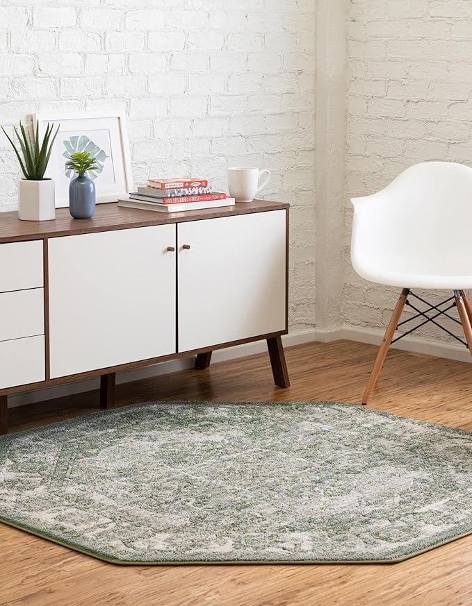 Unique Loom Isabella Collection Area Rug - Adjani (7' 10" Octagon, Green/ Ivory)