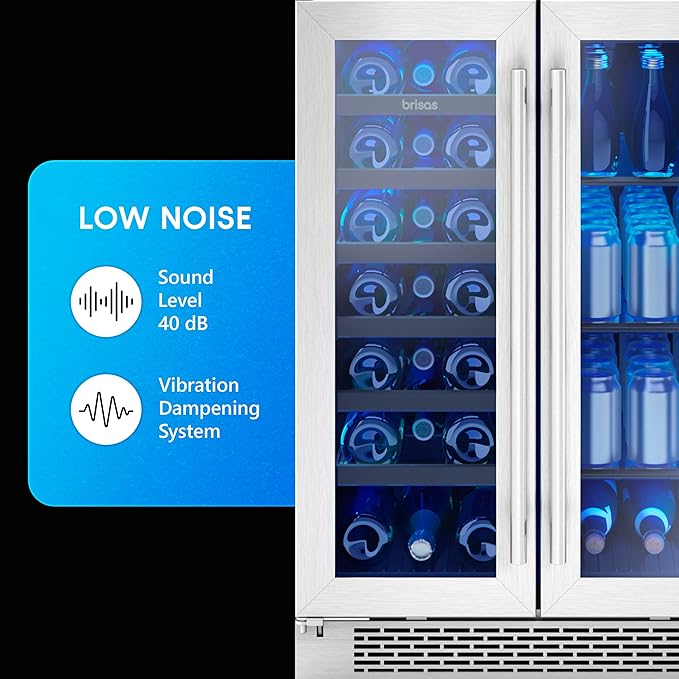 Zephyr Brisas 24 Inch Wine Fridge Dual Zone Under Counter Countertop Wine and Beverage Cooler Cabinet Home Bar Drink Beer Freestanding Refrigerator with French Door 21 Bottles 64 cans