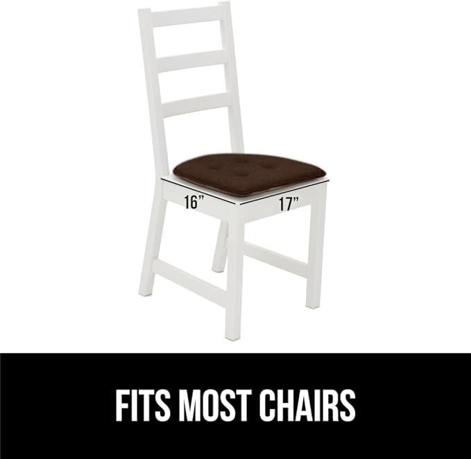 GORILLA GRIP Slip Resistant Tufted Chair Cushions, No Ties Required, Memory Foam Pads for Dining Room Kitchen Table, Office, Rocking Chairs, Plush Seat Cushion Pad, Home Decor, Set of 4, 16x17, Brown