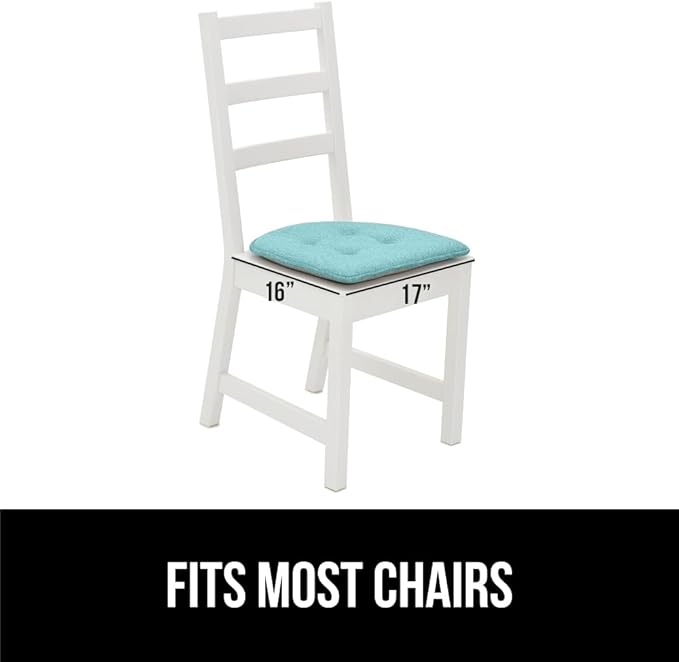 GORILLA GRIP Slip Resistant Tufted Chair Cushions, No Ties Required, Set of 6 Memory Foam Pads for Dining Room Kitchen Table Office Rocking Chairs, Plush Seat Cushion Pad, Home Decor, 16x17, Turquoise