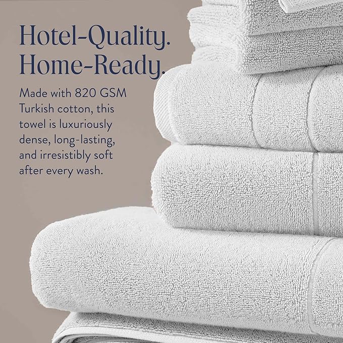 - OUR LUXURY TOWEL WEAVE: Elevate your bathroom with the supreme softness of Turkish cotton bath towels. Made from 100% premium Turkish cotton, their 820 GSM and z-twist construction deliver a superior combination of softness and durability.