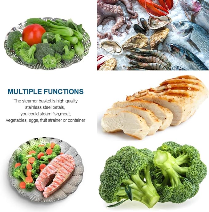 - 【MULTIPLE FUNCTIONS】 - The Steamer rack not only can be used as a food steamer basket, also you can also use it for filter extra water when washing vegetable and fruit.