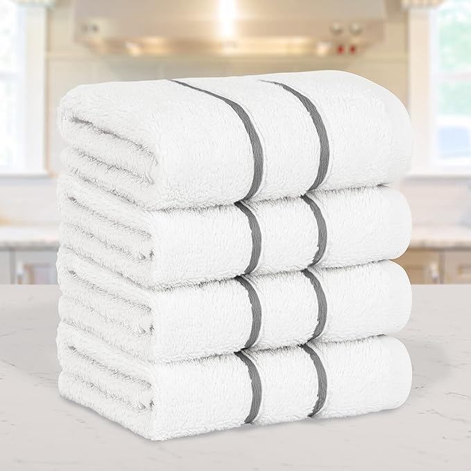 4 Packed White Washcloth Set, 100% Turkish Cotton Washcloths Washrags, Small Hand Face Towels for Bathroom and Kitchen, Dark Gray