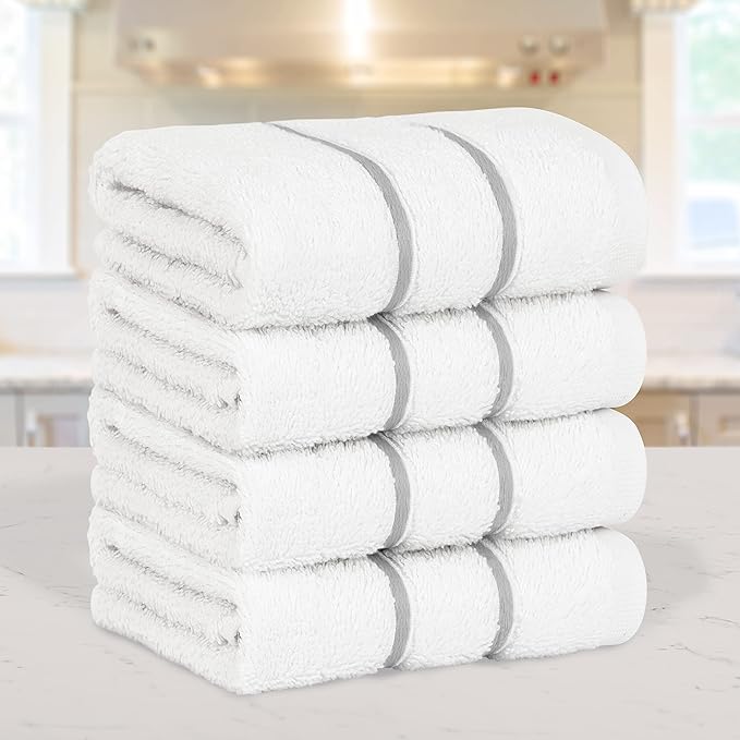 4 Packed White Washcloth Set, 100% Turkish Cotton Washcloths Washrags, Small Hand Face Towels for Bathroom and Kitchen, Light Gray