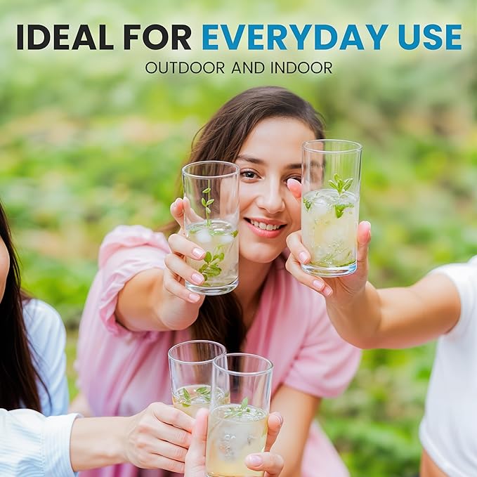 - DAILY WATER GLASSES: We have designed these acrylic drinking glasses set with a smooth and polished rim and large mouth opening for easy refill. Present colorful drinks and garnishes in these elegantly designed drinkware.