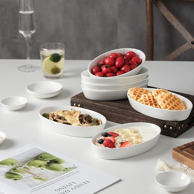 UIBFCWN Au Gratin Baking Dishes, 7.5''x4.5'' Ceramic Oval Baking Dish for Single Serving, Individual Casserole Dishes Oven Safe, Au Gratin Pans for Lasagna & Cobblers, 11.5oz, Set of 6