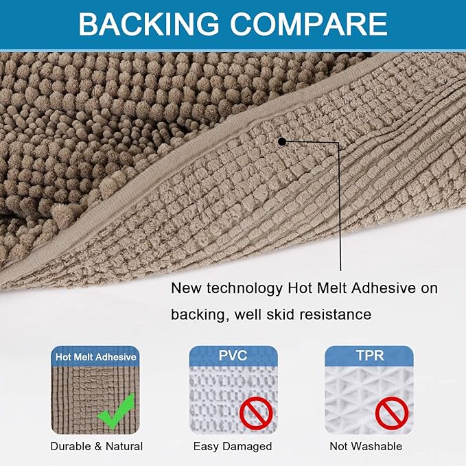 - ULTRA THICK: These bath rugs are passed GLOBAL RECYCLED STANDARD certificate. Compare the normal quality 1350g/sm, this plush chenille carpet set is more thick and bushy, quality up to 2000g/sm weight, thus make the bath mats amazing soft and cozy like a comfortable quilt protector for your feet