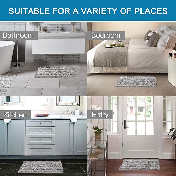 H.VERSAILTEX Bath Mats for Bathroom Non Slip Extra Thick Chenille Striped Bath Rug 24" x 36" Absorbent Non Skid Fluffy Soft Shaggy Rugs Washable Dry Fast Plush Mats for Indoor, Bath Room, Tub - Dove