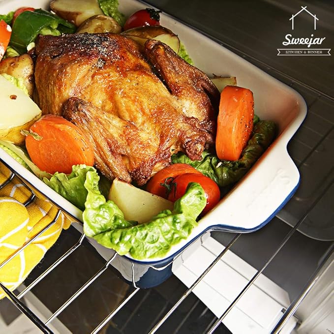 - 【Stylish Rectangular Baking Pans Set】The rectangular baking pans set is equipped with a double handle design for easy food transport from the oven to the table. It is also a charming decoration in your kitchen and dining table which may impress your guests!