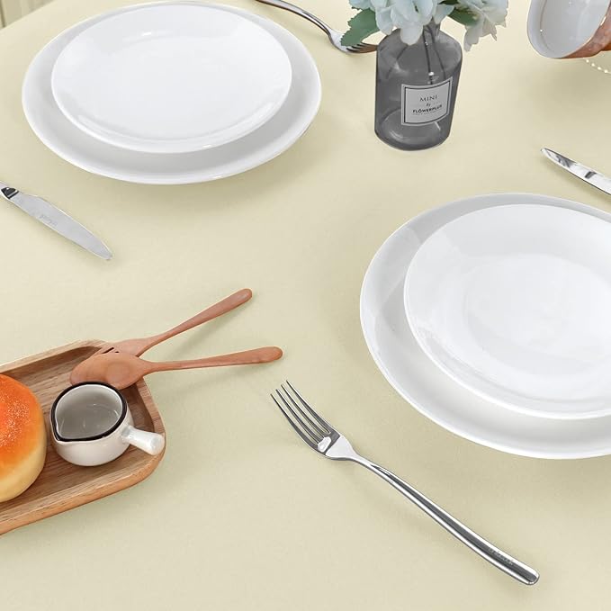 - MEASUREMENTS: This beige table cloth is 60 inch wide and 84 inch long, perfect for standard 4ft table, providing 18 inch drop.