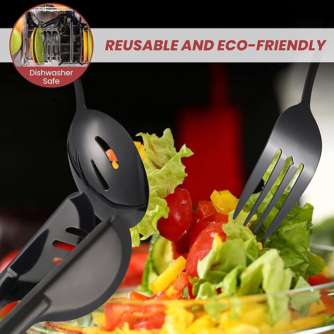 - Multiple uses: the practical tongs are applicable for flipping burgers or fish, grilling meat or as salad tongs, the slotted spoon and fork can let liquid pass through while preserving the solid food on the top, and the solid spoon without holes are optimal for stirring and serving food with a thick sauce