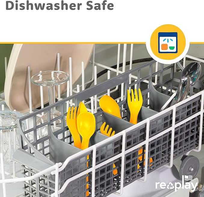 - Sustainable and Reliable: Re-Play's toddler fork and spoon set is made in the USA from recycled milk jugs, making a positive contribution to a more sustainable environment