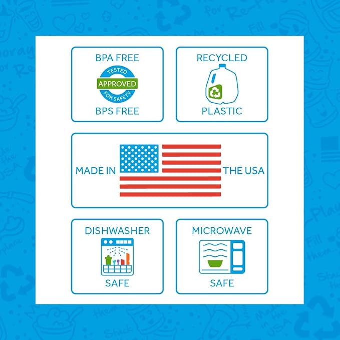 Re-Play 3x3 Divided Toddler Plates and Utensils Set - Toddler Forks and Spoons Set - Dishwasher and Microwave Safe - Made in USA - True Blue