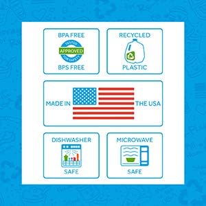 - Includes: 3 Divided Plates, 3 Bowls, 3 Spoons and 3 Forks in vibrant green, purple, and aqua blue