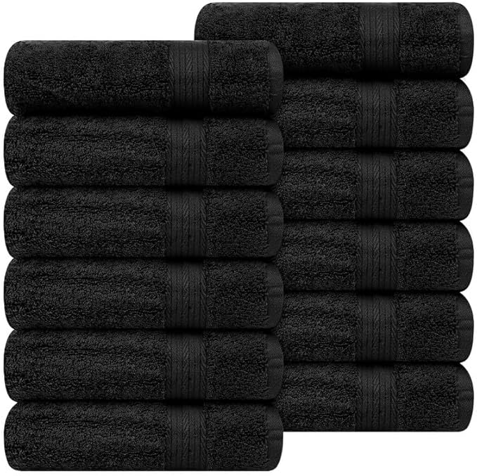 Ample Decor Hand Towel 18 X 28 Inch Pack of 12 600 GSM 100% Cotton, Soft Absorbent Thick Durable Premium Quality, for Hotel, Bathroom, Spa, Daily Use, Gym - Machine Washable - Black