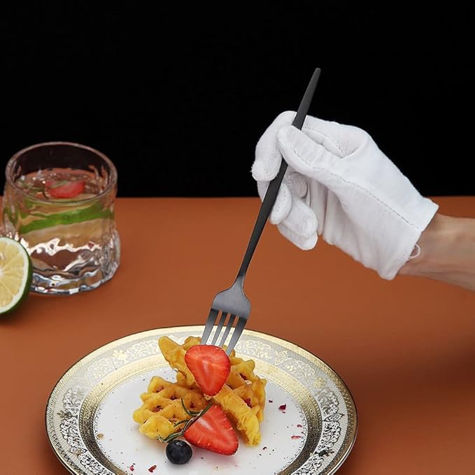 - 【Luxury and High Quality Finish】: These black great dinner forks are polish with matt finish and plating with titanium black. Looks luxury and beautiful. The black titanium plating would protect the surface of silverware from scrath. Food grade material healthy for daily use.