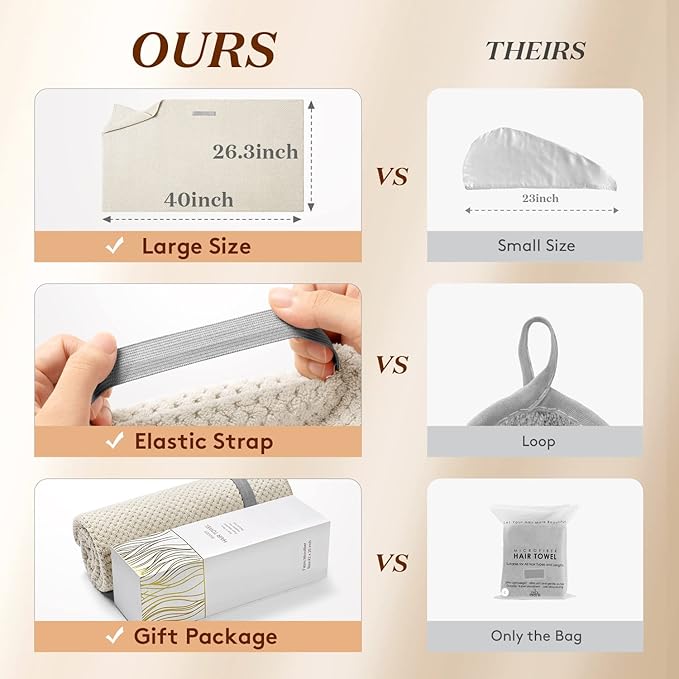 - Elegant Gift Box Packaging: Our large hair towel comes in a beautifully designed box, with multiple color choices. Not only is it great for daily use for yourself, but it also makes a nice gift for wife, mother on holidays like Christmas and Mother's Day, an ideal Christmas stocking stuffer.