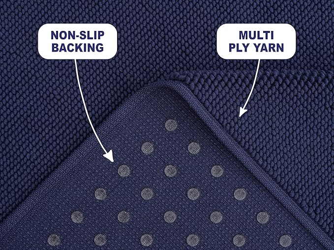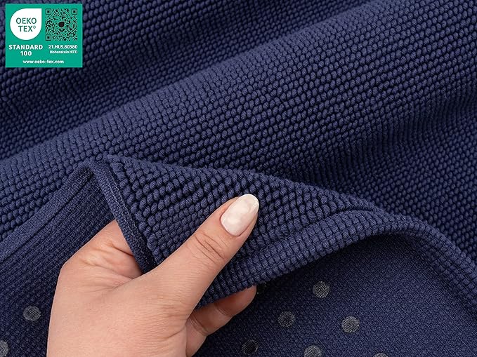 American Soft Linen Bath Rug, 17 in 24 in 100% Cotton Bath Mats Rugs for Bathroom, Slip Reducer Washable Shaggy Form Area Rugs, Navy Blue Bath Rug