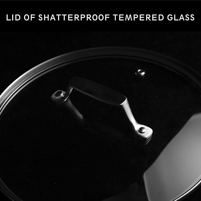 - Scratch-resistant: the pot body is resistant to scratches even from hardwood spatula at 700℉. Lid constructed of shatterproof tempered glass.