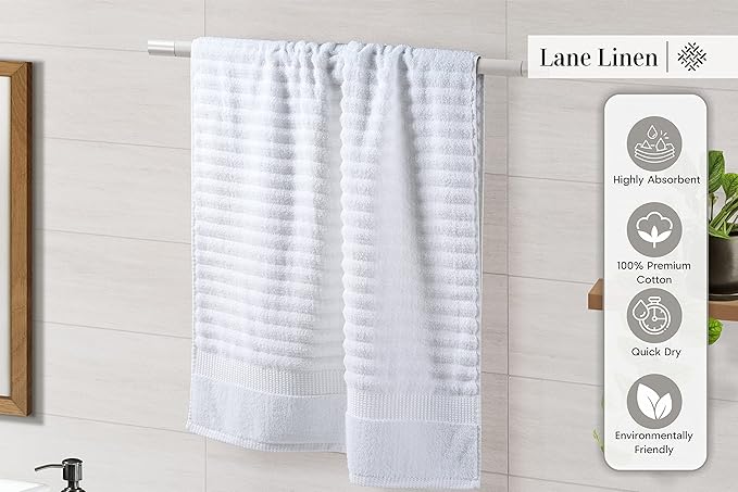 - Luxury Ribbed Bath Towels Set : Bring the hotel spa vibe home with our 100% premium cotton 6-piece solid highly absorbent bath towel set. Boasting a jacquard construction, these white bath towels not only feel soft against your skin, but they're also highly absorbent for convenient and comfortable drying.