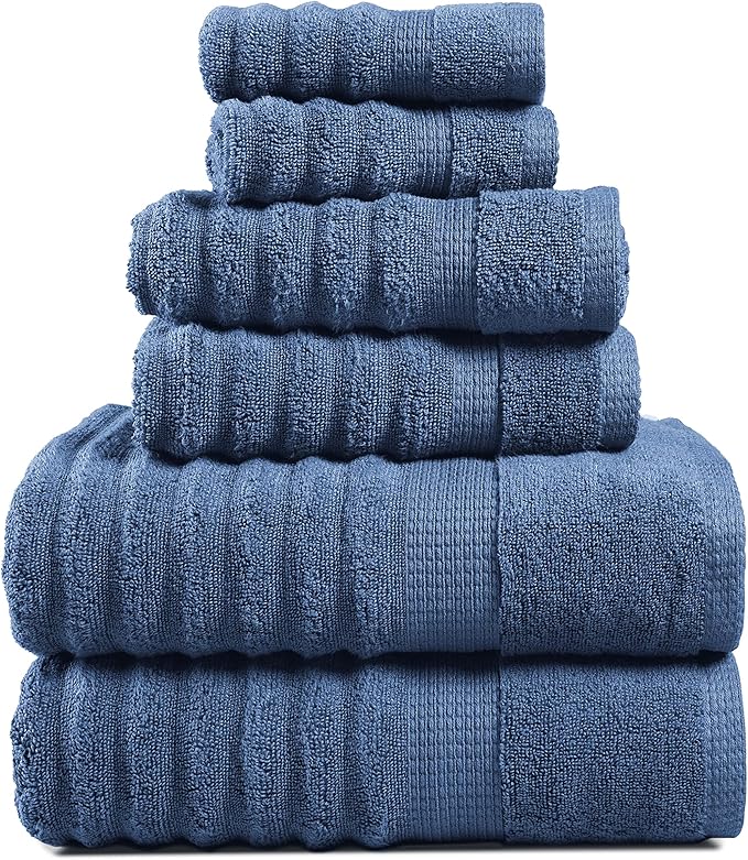 - Luxury Ribbed Bath Towels Set : Bring the hotel spa vibe home with our 100% premium cotton 6-piece solid highly absorbent bath towel set. Boasting a jacquard construction, these white bath towels not only feel soft against your skin, but they're also highly absorbent for convenient and comfortable drying.
