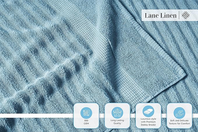 LANE LINEN Large Bath Towels Set - Premium Quality, Soft, 100% Cotton Towels for Bathroom, Hotel & Spa - Includes 2 Bath, 2 Hand & 2 Wash Cloths, Super Absorbent Quick Dry Towel (6 Piece Set) - Blue