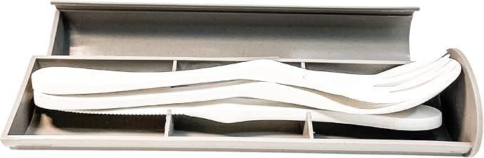 - Set includes: 1 white Eco Knork Fork, 1 white Eco Spoon, 1 white Eco dual purpose Knife - all measure 6.75" in length and Gray Carry case
