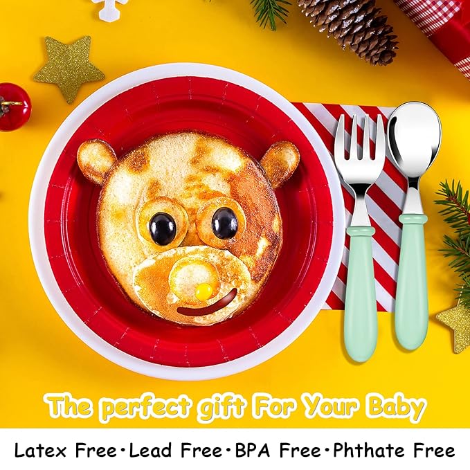 - Safe Utensils: the stainless steel kids flatware sets are designed with round and smooth handles, which are safe to hold and learn table manners easily, and hurt children's lips and hands, they are also safe for babies self-feeding