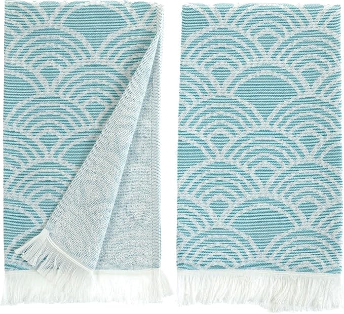 sea me at home Turkish Hand Towels for Bathroom, Kitchen Towels Decorative Set of 2, Luxury Turkish Cotton Dish Tea Towels 14 x 30 Inches for Modern, Boho, and Farmhouse Decor (Turquoise Waves)