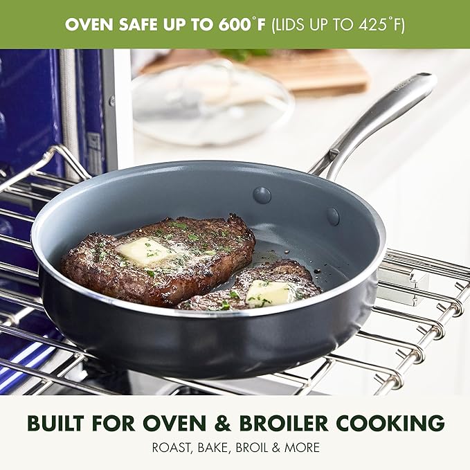 GreenPan 12 Piece Nonstick Swift Cookware Set, Ceramic PFAS-Free Pots & Pans with Lids, Dishwasher & Oven/Broiler Safe to 600F, Kitchen Cooking Set, Sauce, Saute, Stock, Frying Pans, Gray