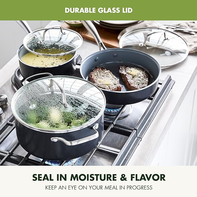- TOXIN-FREE: GreenPan's Thermolon healthy ceramic nonstick coating is free of PFAS, PFOA, lead, and cadmium