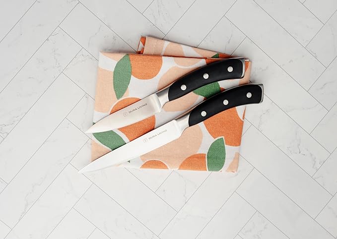 - Ultra-Sharp German Steel Blades: Engineered for performance, this set includes a 5” utility knife and a 3.5” paring knife, both made from high-quality stainless steel, offering precision and sharpness for all your kitchen tasks.