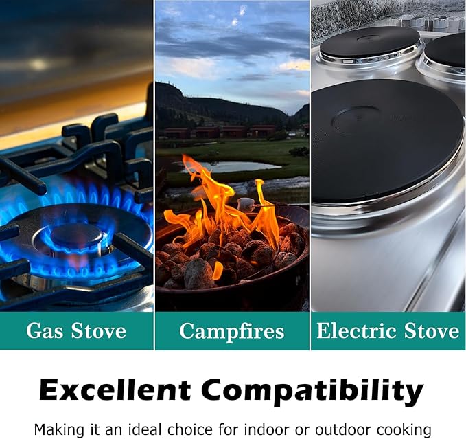 - Excellent Compatibility: Use on all stoves, including gas stoves, ovens, smokeless grills, and campfires, making it an ideal choice for indoor or outdoor cooking.