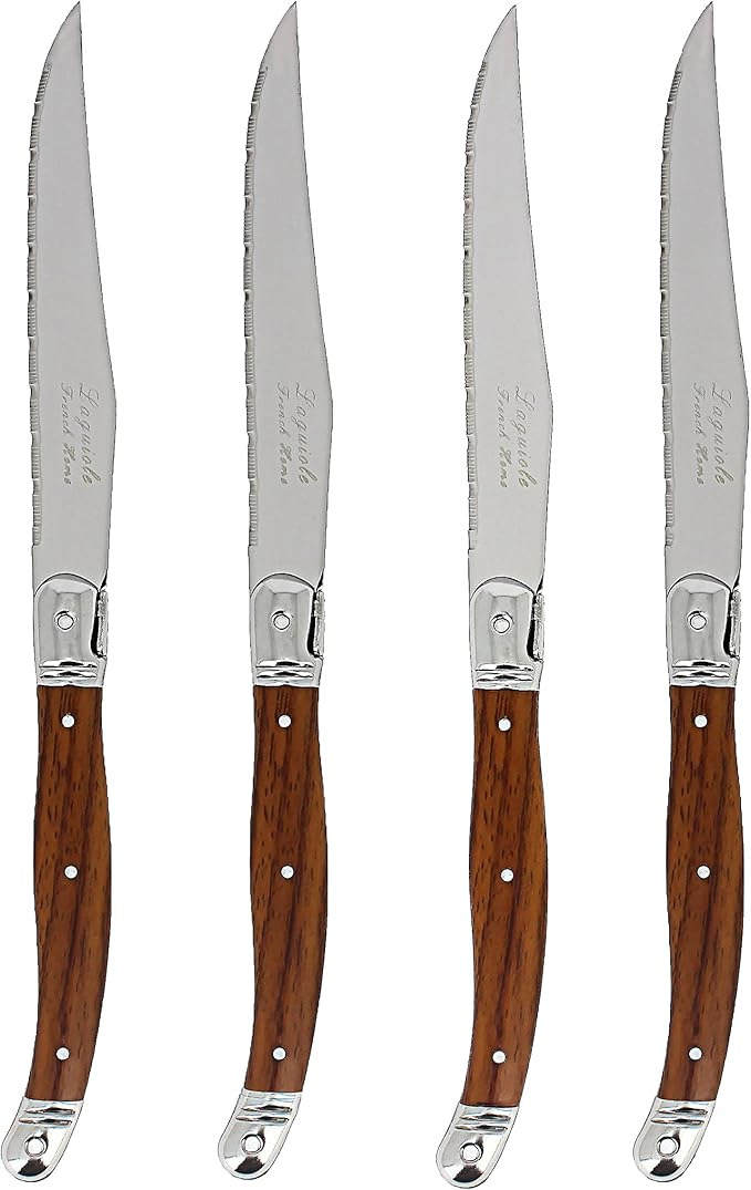 - Timeless French Craftsmanship: French Home’s set of Laguiole Connoisseur stainless steel steak knives features a comfortable to hold, three-rivet curved handle with the iconic bee emblem on the bolster, symbolizing Napoleon, and the French monarchy