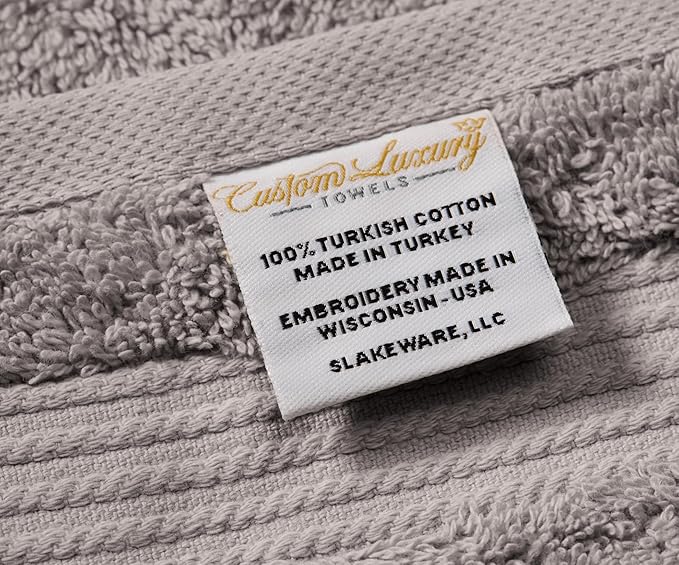 • Made In: Our monogrammed hand towels with initials are world class | Made at our partner mill in Turkey of top quality Turkish cotton | We then embroider every one of our personalized hand towels at our embroidery studio just outside of Madison, Wisconsin to give them that Made in the USA finishing touch