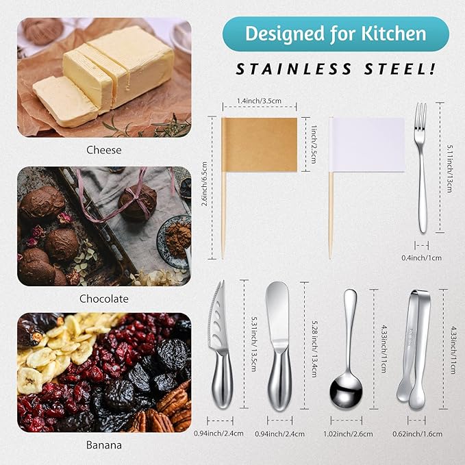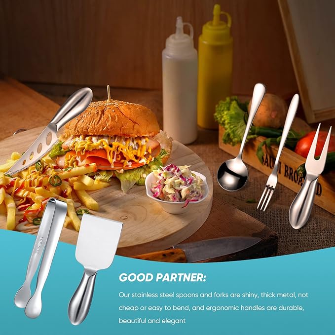 - Wide applications: this spreader knife set is suitable for cheese, butter, or cream, and the spoons, forks, and tongs can be applied for coffee, desserts, yogurt, ice cream, appetizers, sauces, condiments, sugar, and so on, multipurpose kitchen tool for you