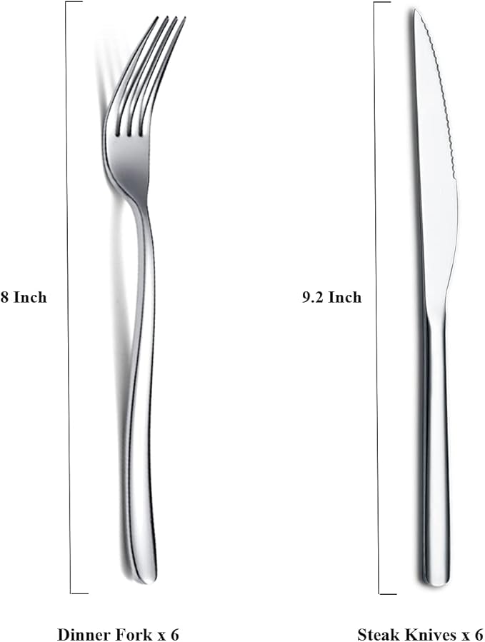 - 12 Piece Silver Steak Knives Set: Include Steak Knives x 6, Dinner Forks x 6.
