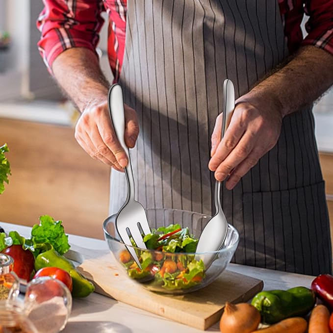 - Plus serving utensils, this flatware set with serving spoons, slotted serving spoons and serving forks, you do not need to pay extra money to purchase these items separately, great to serve your meals and entertain guest, perfect for serving dishes, salad, dessert, appetizer, noodle, vegetable and more