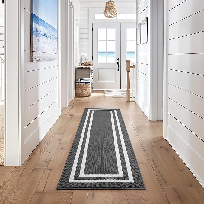 Nautica β Runner Rug | Indoor Runners for Hallways and Entry Rugs| Non-Slip and Non-Skid Entry and Kitchen Door Mat| Machine Washable Entryway Carpet Rugs | 26" x 96"| Double Line Dark Grey